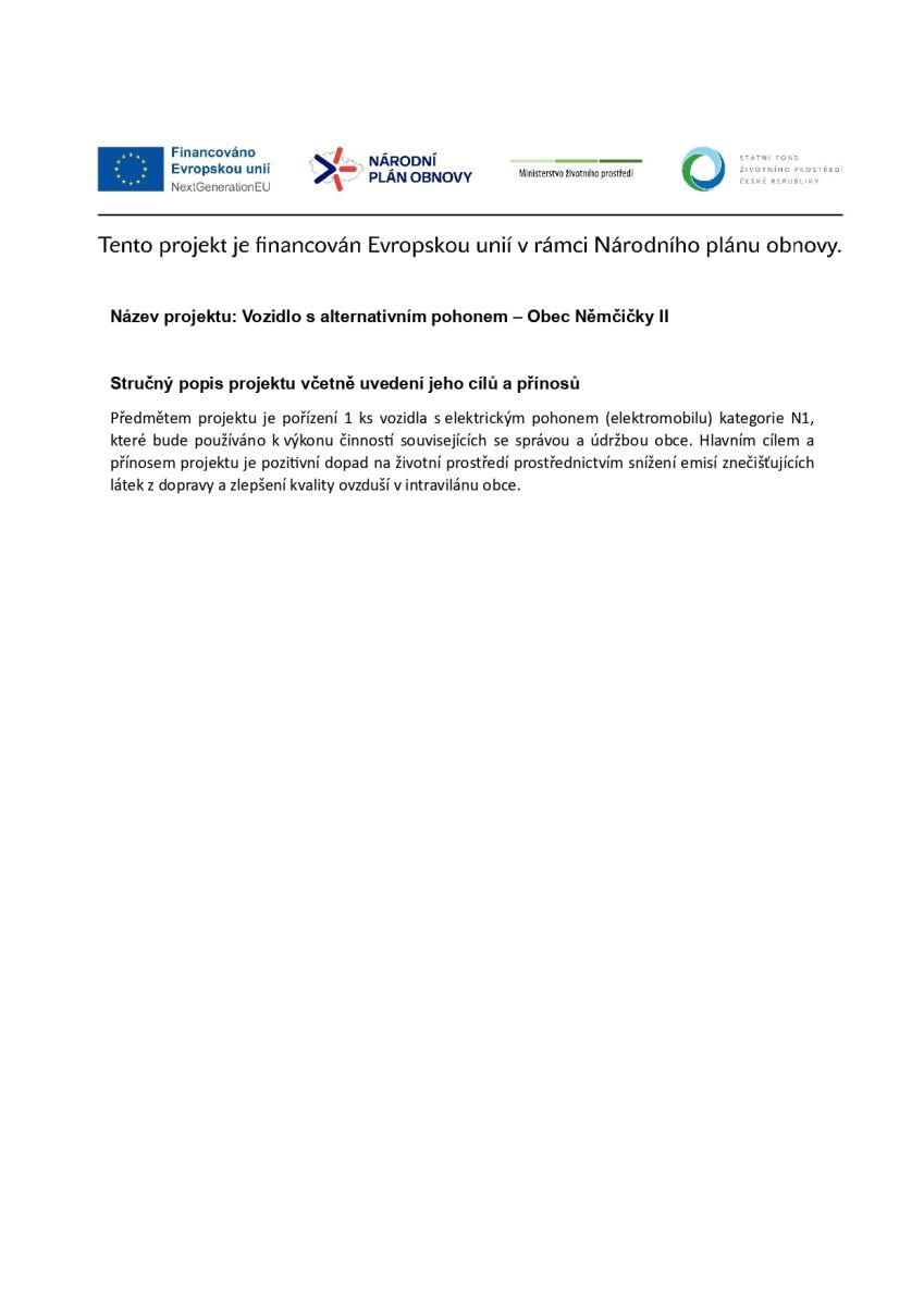 Název projektu: Vozidlo s alternativním pohonem – Obec Němčičky II